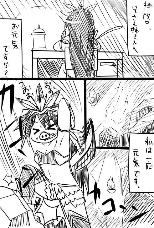 いや、団子が足りなかったり激辛カレーだったりで色んなとこ行ってましたww まず神秘御庭番様との素敵なタイラント(の卵)討伐任務。 激辛カレーと風神の加護を喰っていざ出陣!!! はえーーーーー!!!はえーーーー!!SS撮ってる暇ねーーーーー!! そしてあっさりと到着、火あぶりにして任務完了! 隣でクエが進まなくて悩む続ける神秘御庭番を尻目にタイラントまでついでに殺っちゃおうともくろむ御庭番。 この鳥無勢が!私のスピードについてこれるか!ふははははははっ <激辛カレーのbuffが切れました> はははは <風神の加護g(ry> はっ (リボーン中… 縞「逃げろ!!逃げろぉぉぉぉぉ!!!!」 神「巻き添えとかwwwww」 てことで範囲技が見事にJACKにも直撃、軽く死にかけてたけど無事帰宅できた模様。すげぇ。 そして私はと言うと…。 リボーン時に+激しく吹き飛ばされ+て小さな小鳥ちゃんの巣窟へ。 「…。」 「…。」 「…こんにちは、スカイ バー 」 コンニワー ◎ \(^o^)/ ν しかもSBがネオク山('A' いやほんとアルターありがとうございました…orz そしてその夜、JACKと別れてから新たな御庭番と遭遇。 こ、こいつ速いぞ!?化け物か!!? 悪戯心でちょっかい出そうとしたら失敗し、恥ずかしかったので逃げようとしたら一瞬で追いつかれました。 そして談笑すること数時間… 「あ、夜が明けた('A' 」 久々の御庭番トーク楽しかったです!またよろしく!でも後ろから走ってくるのは怖いからマジかんべn(ry そして今日は団子の具材を調達にエロビンへ。 そういやエロビンとかエロアンとかけっこう流行ってるようですが 何なの!?何でア○ルビーズの森は流行らないの!? 卑猥すぎるからかしら!ア○ルビーズの天然水とかやばくn(ry <シェルレランの手によりパ忍者は死にました> あ、えーと、ヘビ肉集めでしたね。 うん、普通に狩れました。一気に7匹くらい?まとめてうまうま。 しかし二セットで重量オーバー!これは非常に厳しいです。 ちょっとpre御庭番的な日々を送ってるわけなのですが、色んなところのモンスターを倒すうちに… あれ、他キャラで倒すより御庭番のほうが楽じゃね…? え…? え?('A';; ああそうか、他キャラもネタばっかで稼げるようなキャラがいない!!!(ドーン 安西先生、筋力がほしいです…。 ちなみにうちの4人家族の実力の程は… 魔女: 強い時:レッドライン周りを独り占めできる程度 弱い時:ゾンビに殺される パ忍者: 強い時:荒くれ牛をいじめれる程度 弱い時:見習い盗賊にいじめられる程度 鉄壁: 強い時:イクシオンガードに悪戦苦闘 弱い時:ゾンビに回される 吐血: 強い時:オークをつるはしで撲殺する程度 弱い時:エルビンの犬の餌になる程度 ・・・。 安定したキャラいねぇ…いねぇよぉ…orz HP低いなーMP足りないなー→強化で底上げすればいいじゃん! STすぐ尽きるなー→リバしちゃえばいいじゃん! でも近接でそんなもん使えないっす→弓使えばいいじゃん! 近づかれたらどうすんのさ→牙使えばいいじゃん! その結果HP180ST150MP80のPre専ガチキャラが完成。 皆はこんなことにならないように注意するんだお!御庭番との約束だよっ☆ 寝てきます…。 |