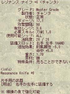 用意した精錬用アイテム数、なんと400!! アイアンナイフ...200本 つまり、ナイフ250本とダガー150本ですね。 これだけありゃあ必ず何個か+6になる!! そして 魅惑的な+7ナイフ、+7ダガーになってくれる!!!!!(ドーン (+7ナイフには攻撃時相手のHP30吸収効果、ダガーにはMP30吸収効果があります) あの攻撃速度でこいつぁチートだ。ってことで早速投入していきました。
